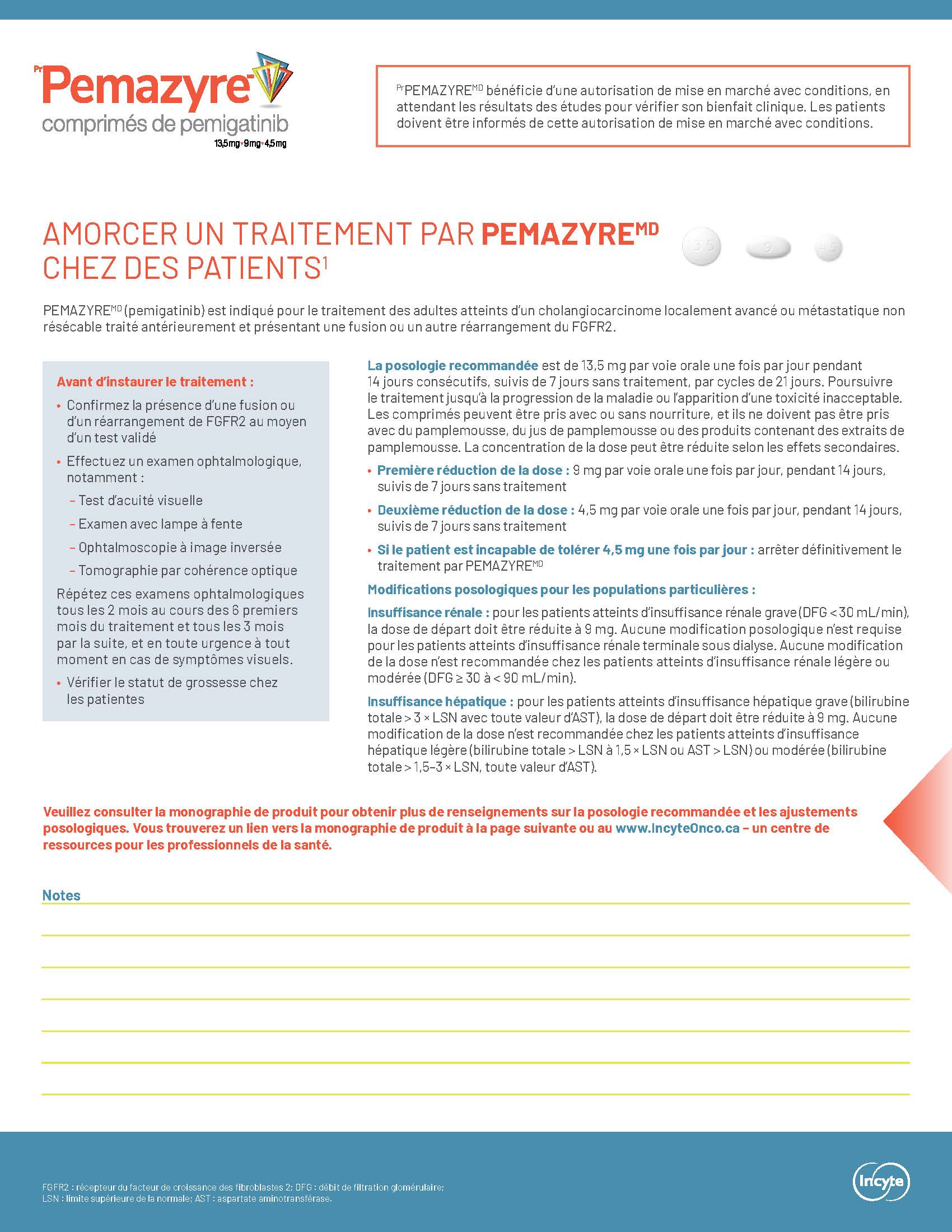 Brochure sur la posologie et les modifications posologiques de PEMAZYREMD